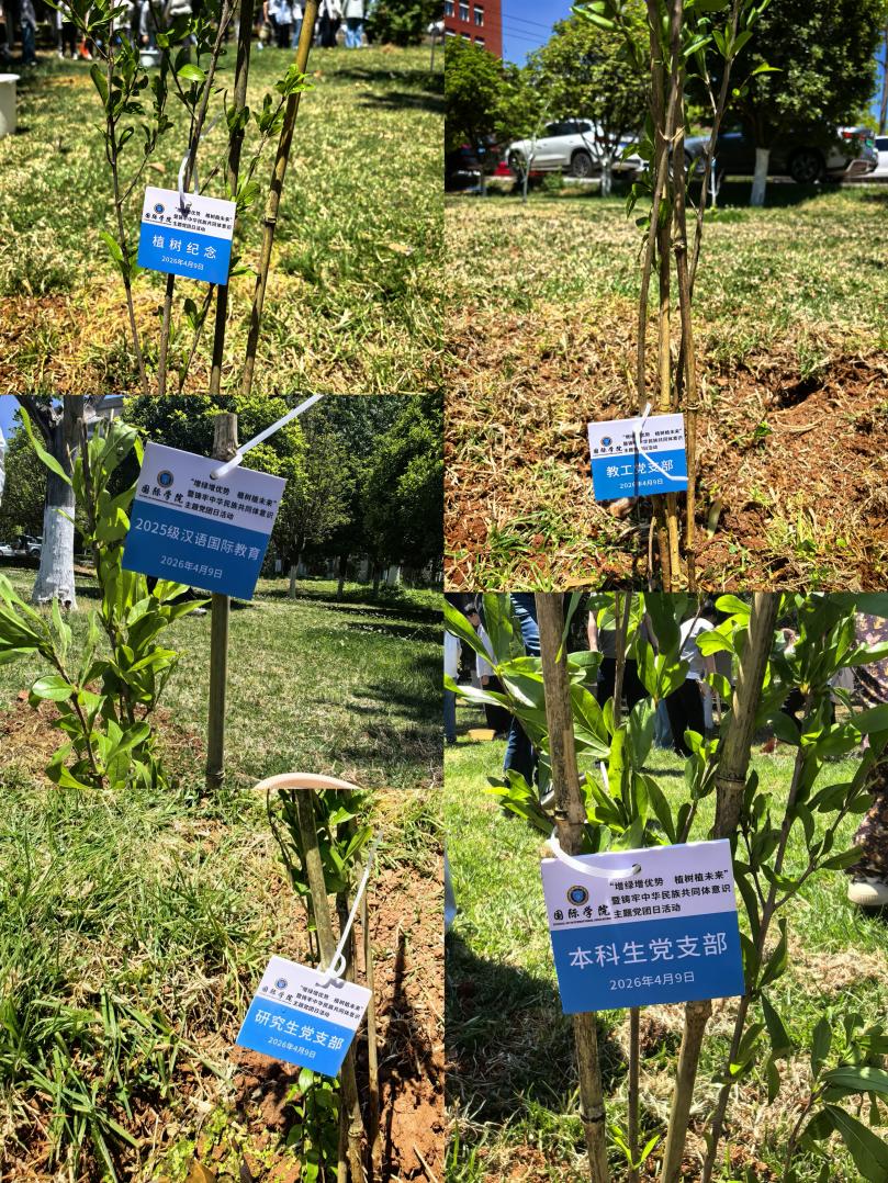 为深入学习贯彻习近平生态文明思想,践行绿色发展理念。4月9日下午,国际学院开展“增绿增优势•植树植未来”暨铸牢中华民族共同体意识主题党团日活动。学院党政领导,教工党支部、研究生党支部、本科生党支部和2025级汉语国际教育专业师生代表共计90余人参加活动。