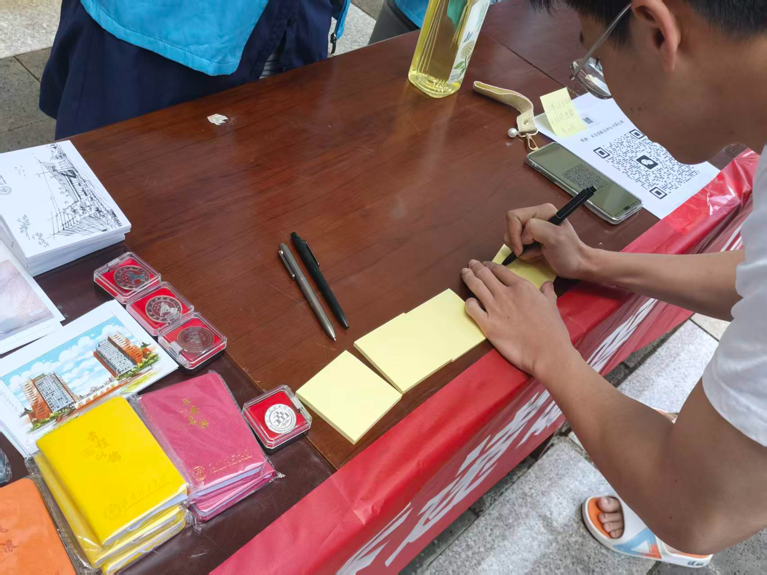 活动现场,氛围温暖而热烈,同学们踊跃参与,纷纷将手中闲置的课外书籍送至捐赠点,有序完成签到流程。不少同学还在明信片上写下暖心寄语,为社区居民送上阅读祝福与精神关怀,每一份寄语都承载着昆工学子的赤诚爱心。为感谢同学们的公益善举,写下寄语的捐赠者额外获得定制的一份纪念品,进一步激发了大家的参与热情。